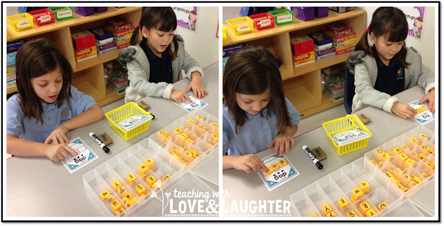 My plan is to first do one of the easier versions whole group, and leave the more challenging version at a station. This way, they will be familiar with how to spell the words by themselves.